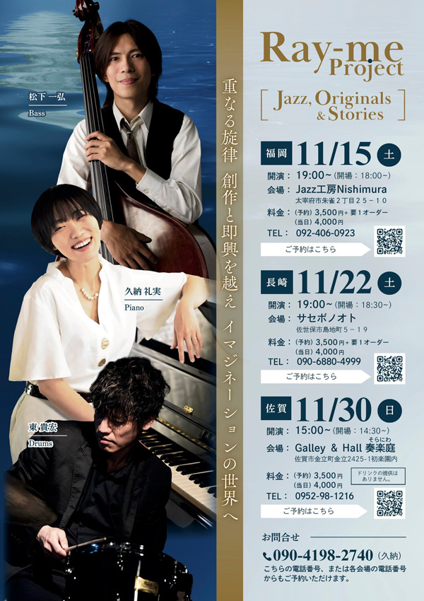 2025/11/15(土) Ray-me Project / 久納礼実(Piano) 松下一弘(Bass) 東貴宏(Drums)